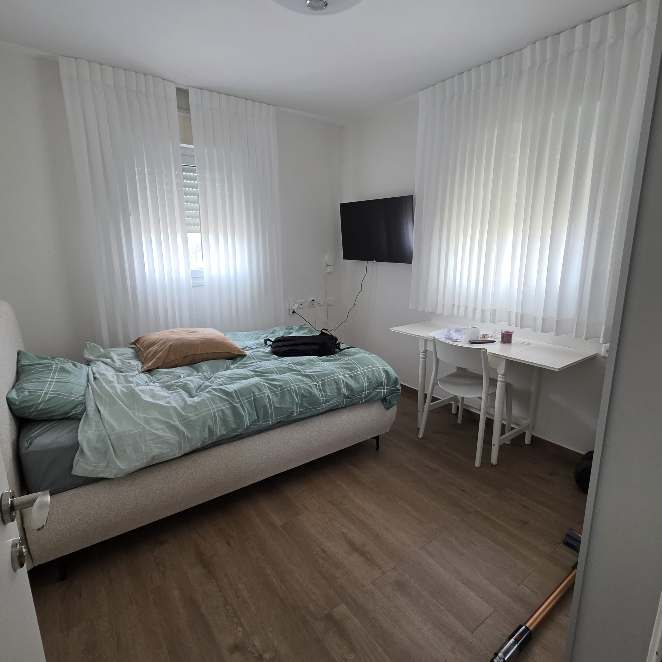 העבודה כללה מדידות מדויקות, בחירת בדים איכותיים בגוונים רגועים, תפירה מוקפדת והתקנה נקייה עד הפרט האחרון.