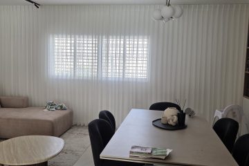 פרויקט: וילונות הסטה וקפלים – סלון עם פתחים גדולים