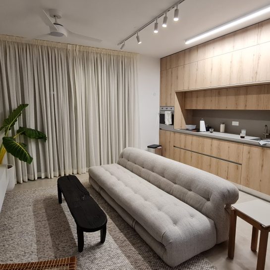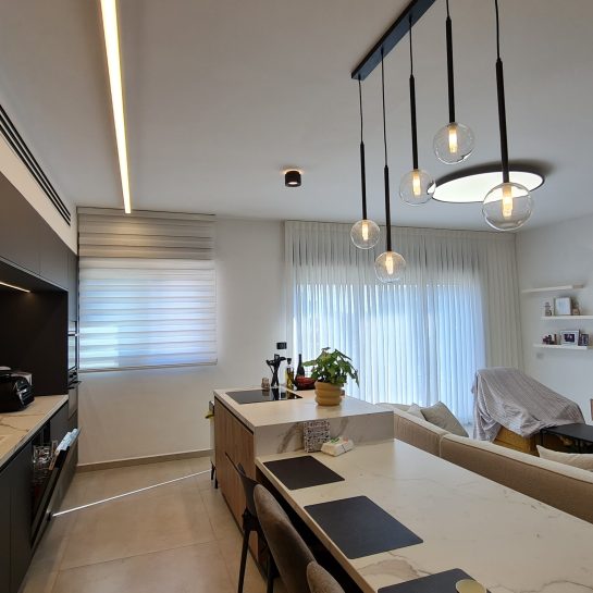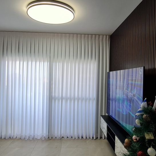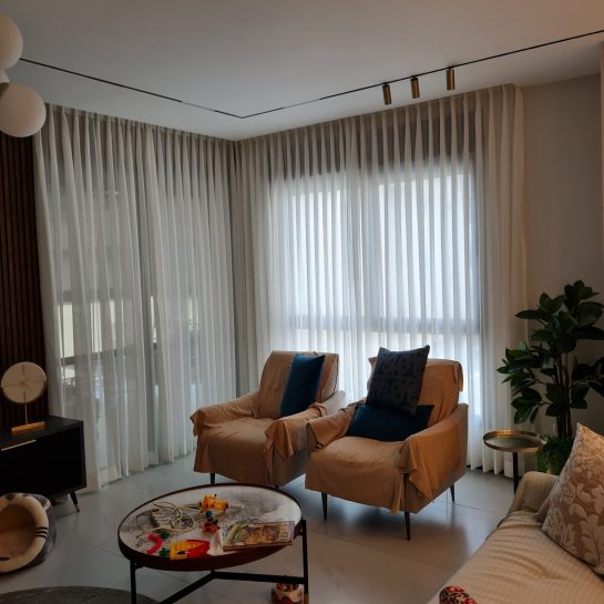 ניתן לשלב שכבות של וילון שקוף יחד עם וילון האפלה ליצירת שליטה מושלמת באור ובעיצוב.